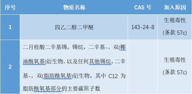 On September 1, 2020, the European Chemicals Agency (ECHA) launched a public comment on two potential substances of very high concern (SVHCs). The two substances reviewed in this review are tetraethylene glycol dimethyl ether and dioctyl tin dilaurate, stannane, dioctyl-, bis(cocoyloxy) derivatives, and any other stannane, dioctyl tin Group-, bis(fatty acyloxy) derivative, where C12 is the main carbon number of the fatty acyloxy moiety. The public comment will end on October 16, 2020, during which all stakeholders can submit comments to ECHA. The approved substances will be included in the SVHC candidate list as the 24th batch of substances.