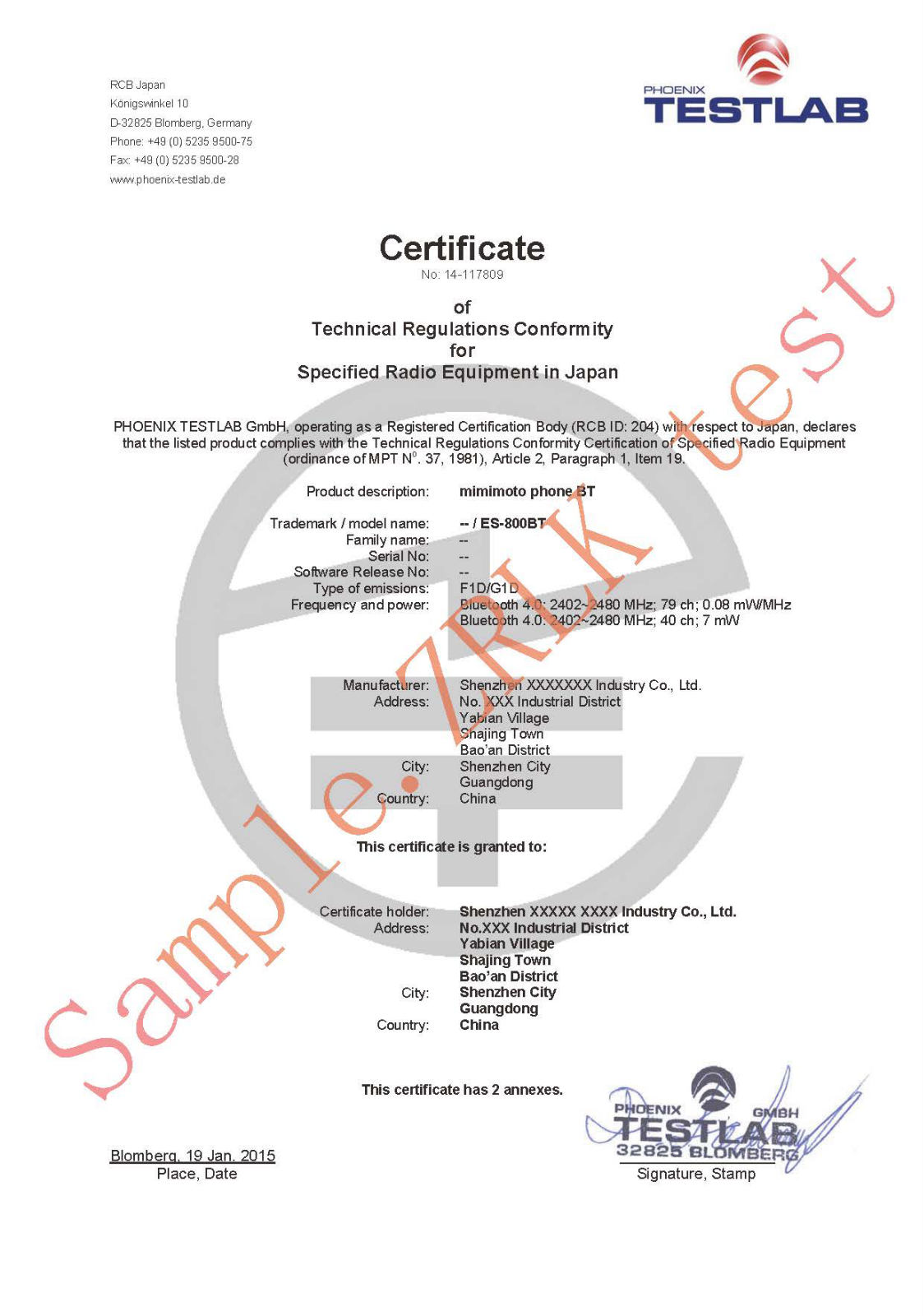 日本《無線電法》要求,對指定的無線電設施停止型號核準(即技術法規(guī)合乎性認證)。TELEC認證是強迫性的,認證機構為MIC在指定無線電設施范疇認可的注冊認 證機構TELEC(Telecom Engineering Center)是日本無線電設施合乎性認證的次要的注冊認證機構,,TELEC在日本也叫MIC認證, TELEC為MIC指定發(fā)證機構之一,故統(tǒng)稱TELEC認證。