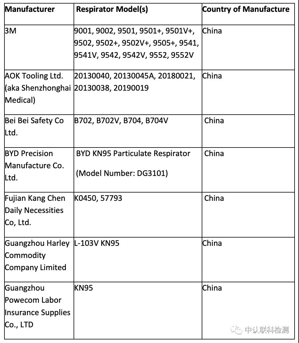 5月7日FDA再次修改了其在4月3日發(fā)布的中國KN95(FFR)口罩認(rèn)可規(guī)則。并對之前發(fā)布在白名單(Appendix A)中的產(chǎn)品進(jìn)行了更新,由原本的74家白名單突然只剩下14家了!原因無外乎是根據(jù)最近一次CDC(NIOSH)的抽驗結(jié)果,有不少來自中國的KN95口罩的過濾效率出了問題。下面我們一起來看一下那些廠家經(jīng)住了FDA+CDC的雙重考驗,仍能留在磅單之上。